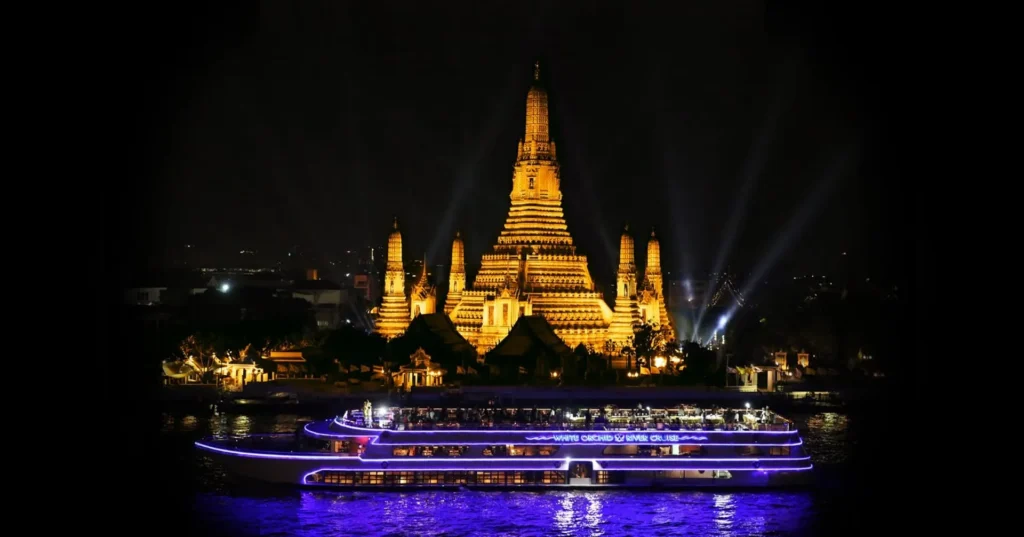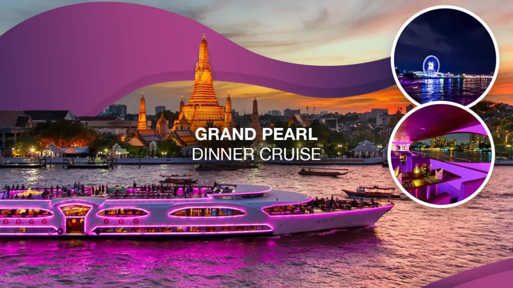 Set sail on the Grand Pearl Dinner Cruise for a spectacular evening along the Chao Phraya River, offering a blend of luxury, fine dining, and...